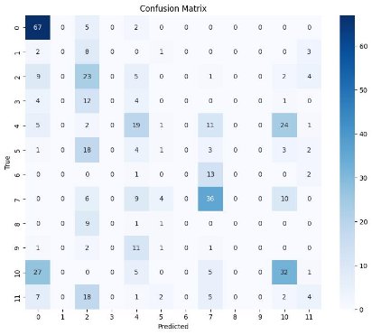 - ClinicalBERT's Baseline: ClinicalBERT, with the lowest accuracy (0.391), precision (0.307), recall (0.391), and F1-score (0.333), highlighted the challenges in the dataset and served as a baseline model. The significantly lower metrics indicate that ClinicalBERT struggled with the complexity of the classification task.